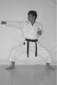 3 .The movement of hands: strike the middle section with your right fist and at the same time withdraw your left fist to the left rib