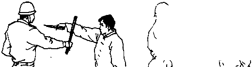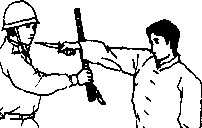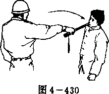 我有手握警棍,右臂下垂,警棍与右臂成90。角,而后向 前捅剌暴徒腹部〈图4-431)