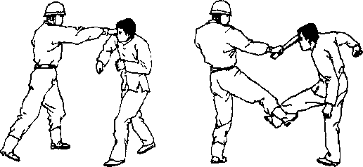 (2)再用武装带抽击敌右侧颈部(图4—462);⑶起右脚由外侧勾踢敌左小腿(图4—463)。(2)再用武装带抽击敌右侧颈部(图4—462);⑶起右脚由外侧勾踢敌左小腿(图4—463)。图 4一462 gj 4—463图 4一462 gj 4—463