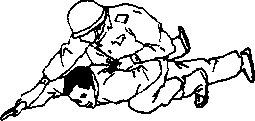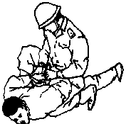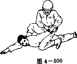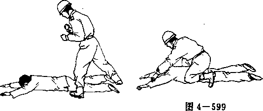 左侧上步(图5 - 598),骑跪在敌背上(图5 -599);