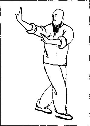 为节约篇幅,避免重复起见,所有动作说明 均介绍左转势变势演练为主,而右转势练法省 略。惟左势与右势动作相对称,方向相反,图示亦 相反,学者可以自行演练,以后各势均同此。