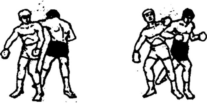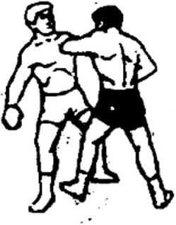 敌方左剌拳佯攻,并以右序前省我方档、腹部,我方即提右 腿向右侧扣防.然后左脚迅速前落地,以左切肘猛切敌方心窝附 近部位,随即以右撬肘攻击其胸说部(图517、图518、图519)。