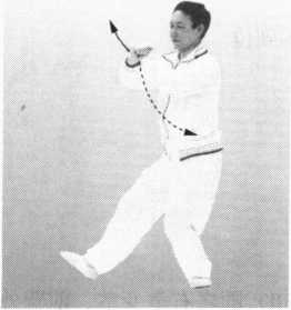重心前移,右腿屈弓,