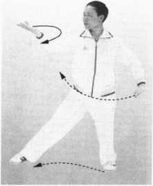 (2)摆脚上步时弧线绕步, 上体歪扭。