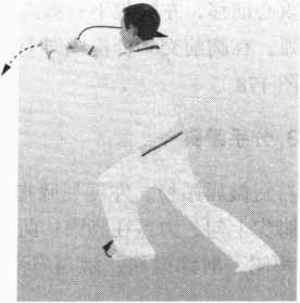 (3)贯拳时两臂先内旋伸摆,再向前圈打。定势时顶头沉肩,上体正 直,两臂撑圆。