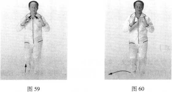 (4)合手时重心偏于左腿,右脚跟提起,成右丁步。