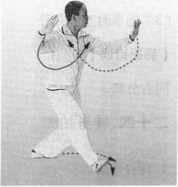 1 图135图135.转身分手图135图135重心后移,右脚尖外撇,上体右 转;两拳变掌左右分开,掌心皆向 外,目视左掌(图135)。2 .收脚抱掌重心前移,左脚收于右脚内侧, 上体微左转;两掌从左右两侧向下、 向内划弧,至腹前相交、举抱于胸前,左掌在外,掌心皆向内。目视左前方(图136)。