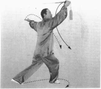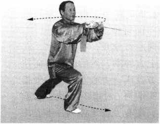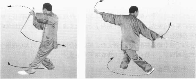 (2)整个动作要沿圆形走转,身、械要配合协调。圆形的大小根据个 人的步幅而定,步数也可减为七步或增至十一步。