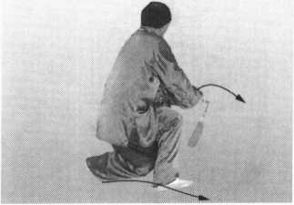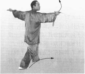 左、右脚继续沿圆弧路线行步,走至第五步时是左脚在前,上体左