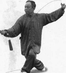 ① 上步要轻灵平稳,重心不可忽高忽低。本势连续上步,上一步,绞一剑, 共上三步,行进方向为西南,与绞剑协调一致。