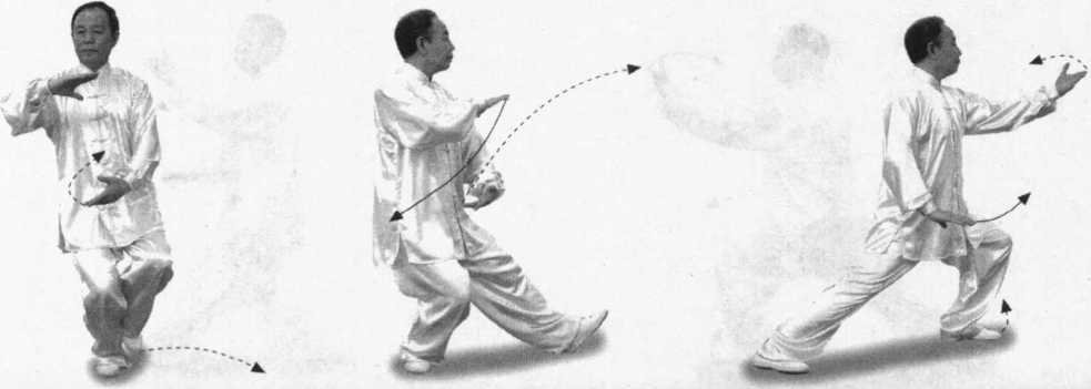③ 手臂的前举和下按应抓住“匀速、缓慢”这个关键。手臂的移动要有逆 水前进的感觉,既要有一定的紧张度,又不可僵硬,既要放松,又不可松懈。