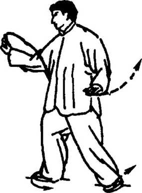 6. 向后坐身,左膝屈而左脚变实,右脚尖上跷,右腿展直。
