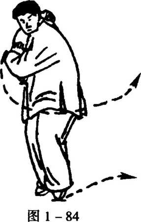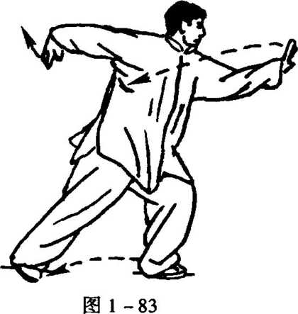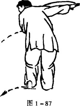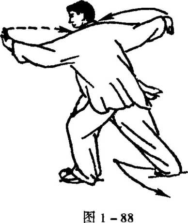 11. 接上动,续做反向图1-79至图1-83动作返回,结束 本势(图1-88)。