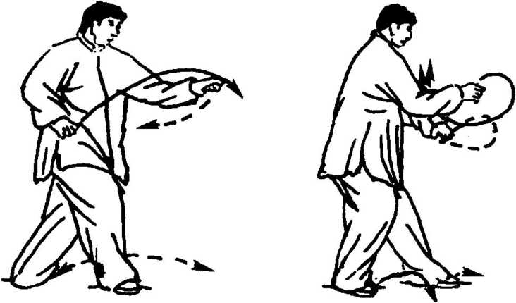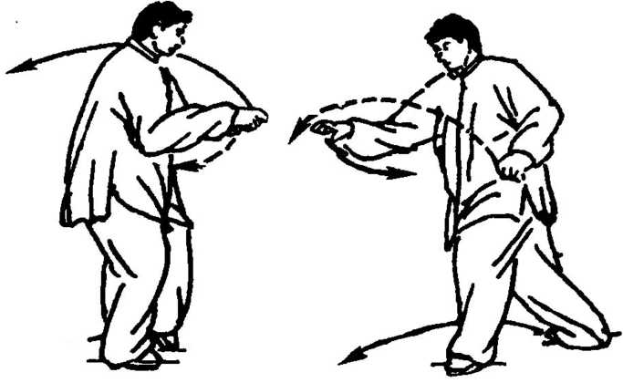 (1) 此势意在轻身、轻手、轻步,专于心安神静意清,从而突 出一“灵”。内含松柔、轻灵、自然之妙。