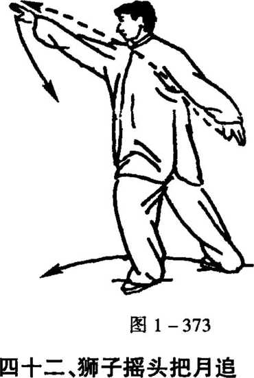 前探,手心仍朝前下;左手向下而后展摆左臀侧上,身肢都要舒 展开,眼前视(图1 -373)。