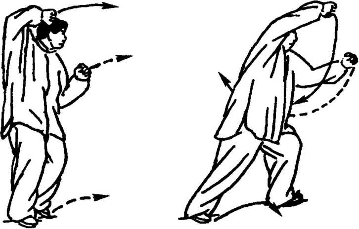 m 么里379) 〇齐下,成双撞捶,右拳不低于脸,左拳不高于胸,眼前看(图l -