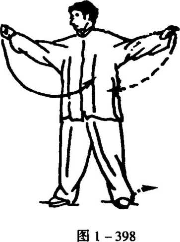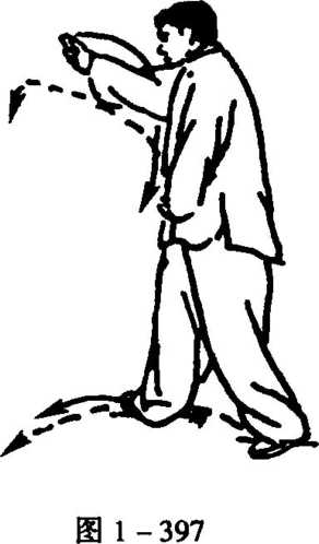 12. 从图1 -397,续做反向图1 -388至图1 -396动作,但 左右相反,即先做左势后做右势返回,结束本势(图1 -398)。