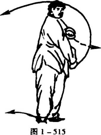 14?从图1-515续做反向图1-504至图1-514动作,但 左右相反,即先左势而后右势返回,结朿本式(图1-516>。