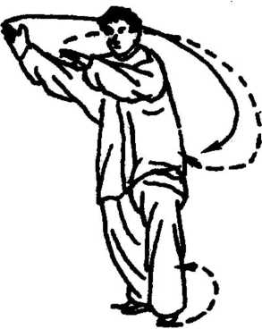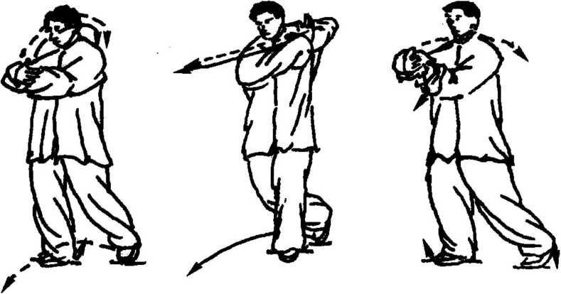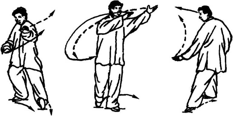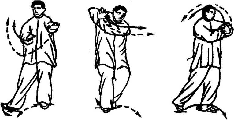(1) 步动身移,手随身动;干动枝 摇三节合整;以本统末,周身一家;动 转全圆,尽其自然。