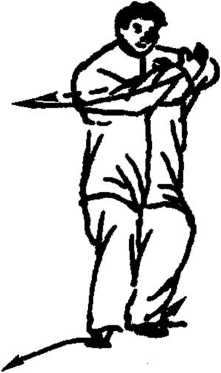 1. 图 3-18图 3-18接图3 - 18o右脚里收左脚内侧, 脚尖点地,成右丁步;同时,又随沉右肩成 欺靠,右手外旋,两手一齐向左上提抹左 肩前,右手在外,手心朝后,指尖朝左,左 手合住右腕,交叉成合抱掌,固气凝神,蓄 而待发,眼向右睨视(图3-19)。