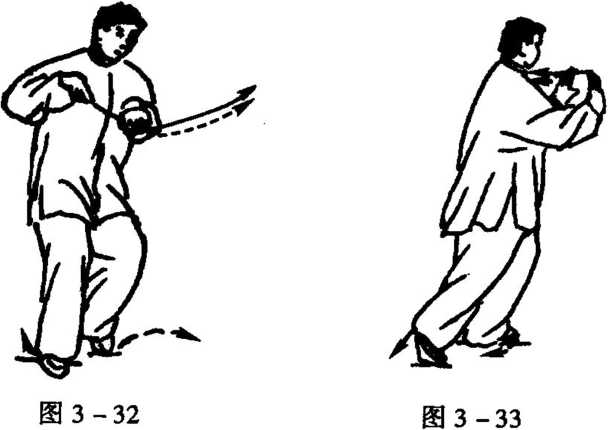 (2) 转环掌成沾粘,抽身手而猛闪离。离手要惊,是乱神之 法,离手而吞大蟾气,乃蓄而待发。沾而得机,由沾而发;由离得 机,由离而发,沾离兼施,总占先机。得机得势,推按得力,妙出 自然。