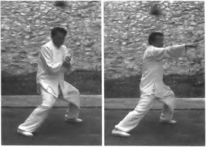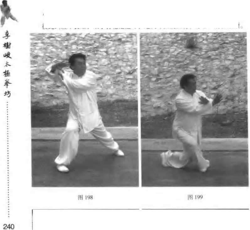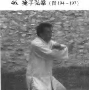 (图 19()-192)传统雪太极拳此势手脚要齐到,蹬出寸劲不过腰;发前蓄势平心气,抱腰提脚收再抛,图 19() -2237图 190 - I注:“收再撇”指先收回手 脚(包括劲),再抛出手脚,蛤 同抛物。45.崩肘(图193)图195图19423947.小擒打(图198-201)彼此纠缠不畏难,双手打轮走连环;走到尽头旋腰胯.穿心一肘任敌顽 抱头推山小擒打小擒小擒打打图202241