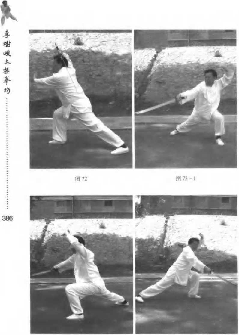 上下翻飞左右冲,紫燕分水一般同;再接鲤鱼龙门跳,俯身压刀i作争锋传统吴式太极刀(太军三刀)图 74-I387碧辨或异尊才功