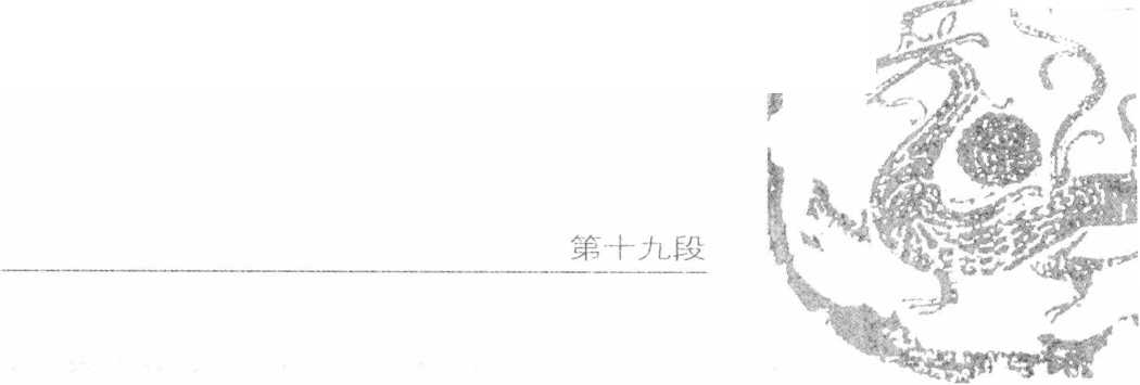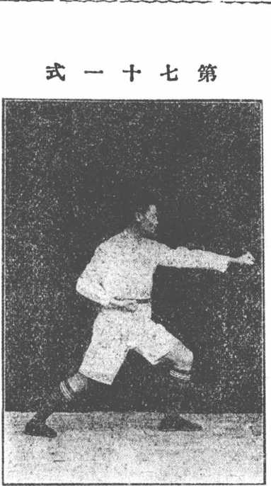 Q 令动作身稍向右转。步右足原地伸直;左足向前落地,腿弯,成左弓箭步。手 右拳同时收贴腰间,手心朝上,肘屈;左拳向前平直打出,手心向下,虎口朝右。一。六六合潭腿身稍向右舞O步右足原地伸直o o O 左足向前落地腿W成左弓箭步IW名m拳 口令三勤作手右拳同畤收贴腰卧手心朝J-肘郦 左拳向前平直打呼手心向To虎口朝存3点3点眼视左拳。用法手 此承上式。敌如以右手击来。我则将右拳格开, 随用左拳向敌心击之。第十九段第七十二式