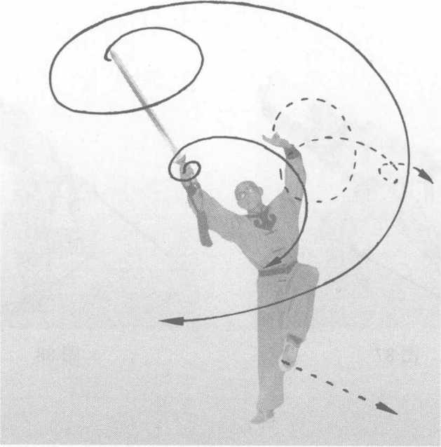 图86图86巧画峰峦剑式走向耐人寻味,手中剑仿佛变成了一支画 笔,在画卷上由左至右挥洒自如。可尽情发挥其想像,巧画于 峰峦之中,享受那写意之作,真乃惬意。