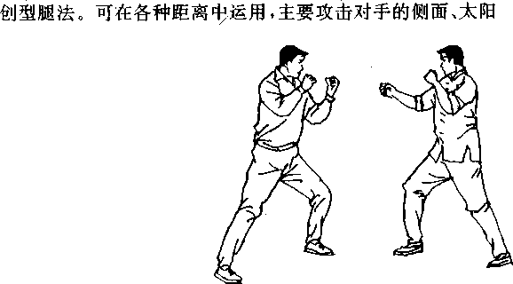 向上,从外向内扣扭,整个动作从起到收不能间断,支掉腿要 稳,勾踢一定要狠。