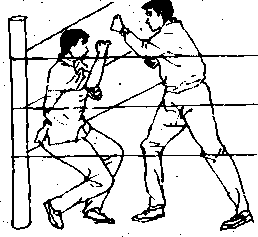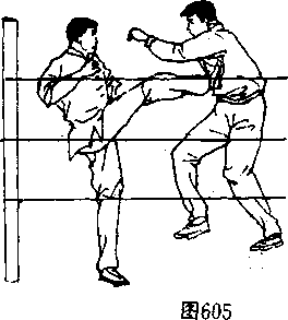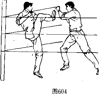 [技击要诀]本招法亦是身材短小者对付身体高大者的最- 佳方法。还可用跳跃步来闪躲对手的打击和跳近对手伺机进' 攻。在对手面前,忽左忽右的移动是最能迷惑对手或攻击对手 的,但要以你为轴心来转动,而使对手跟着你绕外圈消牦其精