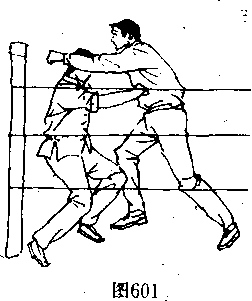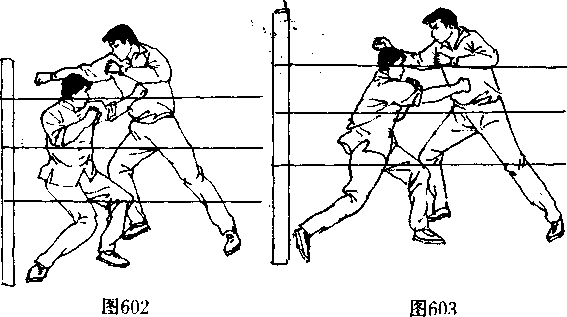 ,临场比赛中,如能充分、合理、及时的利用场台四周的绳 索,来施展自己的技术、战术,那将使自己的进攻和反击技法 胃的威力大大加强。