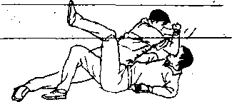 身上步,进身贴近对手,用左手搂抱住对手的头、颈的后部,同 时用右手臂.穿、抬其腿膝部左后的厢窝部位(图610,随后, 蹬腿、上体前倾,用头撞技法冲顶对^手面部或胸部,右腿用下 段右倒挂腿技法向自己身体的左内侧方向猛力勾踢对手的右
