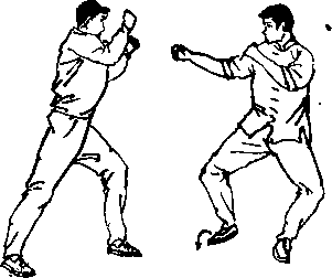 动作要领由戒1备势开始(图207),李小龙用前手直拳分散对手注意力同时
