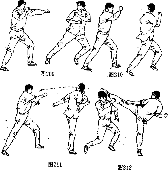 图208图208的既快又强的旋踢腿巳击中了对手头部或颈部(图211、