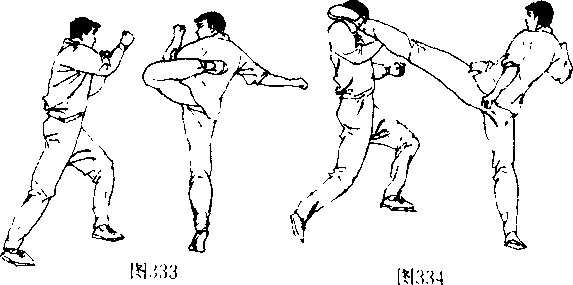 攻击时,李小龙注意观察对、手的面部表情图328),当光小龙弄清对于逼近的路线右便迎上去向对手的膝关节狠狠地踹击一脚(图329、 %