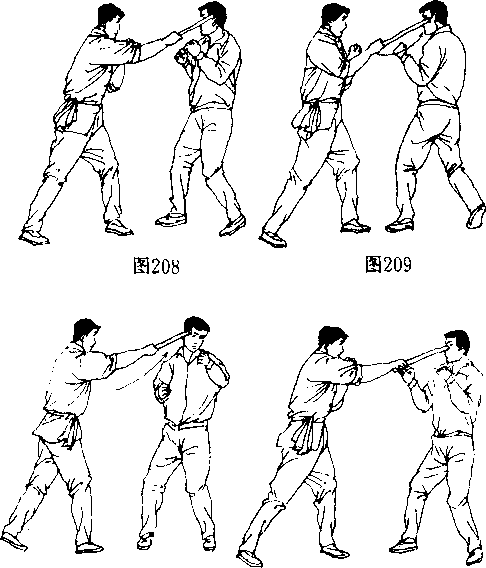 (D施用短棍前端由上斜线向下抡打。(图208)
