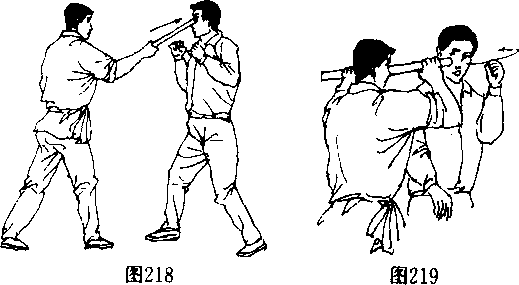 (5)施用短棍前端向前抽击。(图218)
