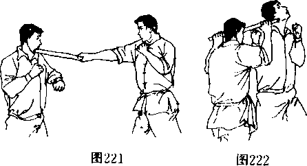 (2)旅用短棍前端向前抽击。(图221)