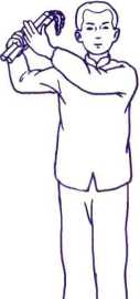 开步双手擎天势,定位倒手势循环。