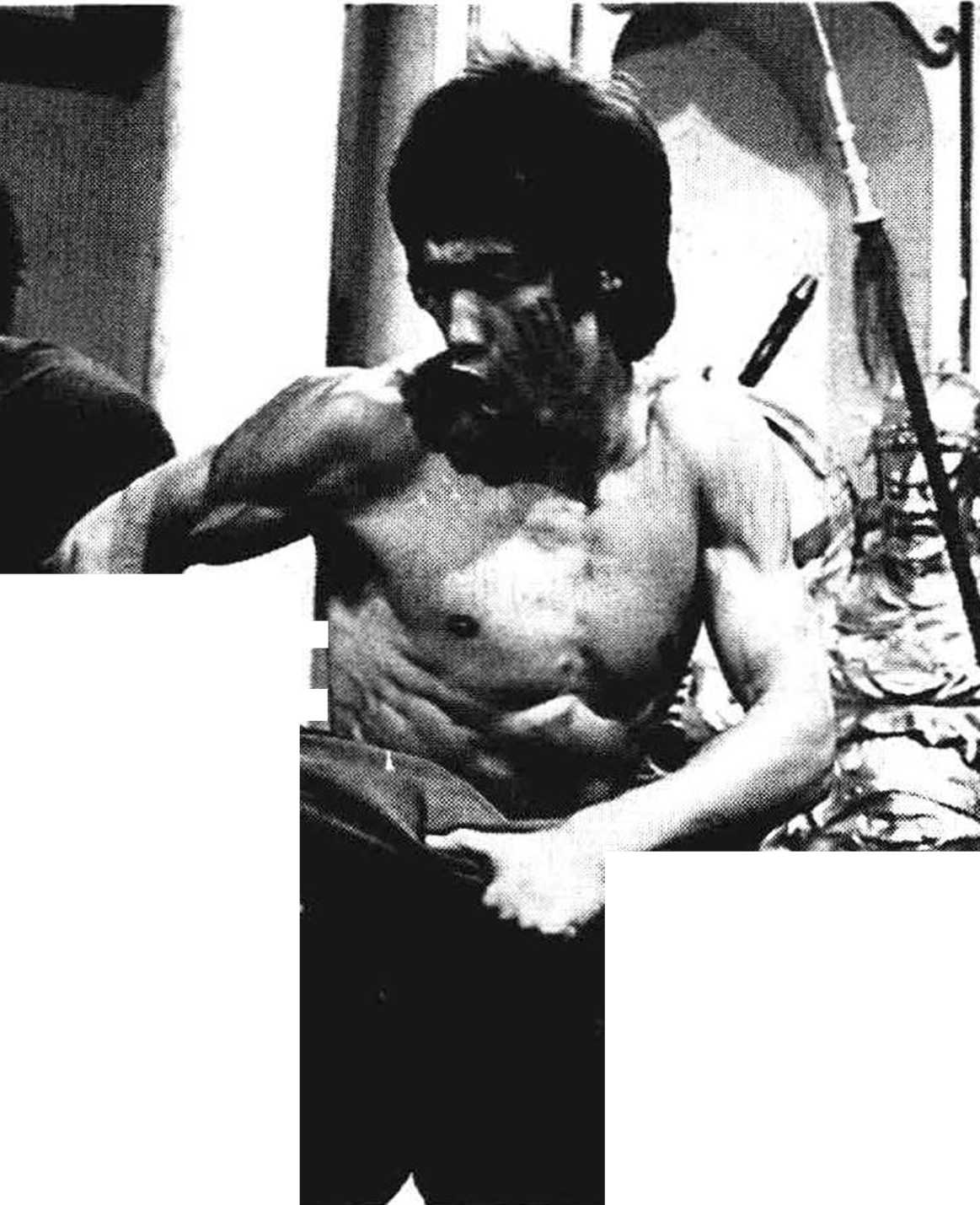 1968年,当我正在为美国有史以来第一次举办的全接触踢拳赛做训练 准备的时候,李小龙将这个日常训练程序推荐给了我。比赛是在三藩市举 行的,在三藩市立体育馆里。李小龙告诉我:“拉瑞,我建议你坚持每天按 这个常规程序进行训练,并且尽你所能他说,“增加回合。完成更多。