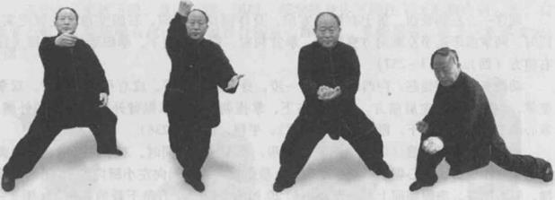 1 千斤拔坠这个动作用了四种劲路组成。一是拄像把一堆散乱的东西收拢在一起二是掀,像把一块非常重的东西往前上方向掀起来三是揉像活面一样使劲往下揣四是拔像把一重物垂直往上拽起来一样。这四种劲合在一起练出功夫较快。