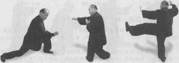 龙虎太瞿龙虎太瞿距地面约30厘米。眼神关注右拳下砸。此为第三捶。(图3-234)