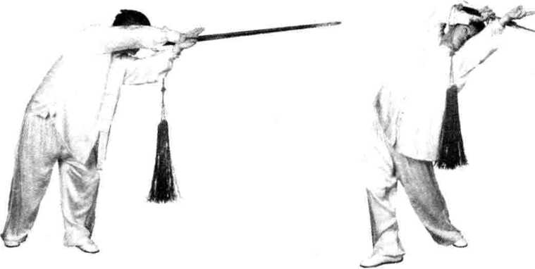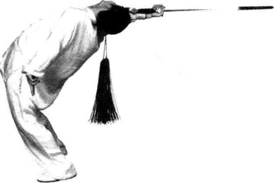 外旋尽量向后直伸,上身向后翻转要形成反弓形。上身 后仰扭转和行步各部位要协调配合,连贯和顺,力点在 剑尖。独立刺剑要整合干脆。
