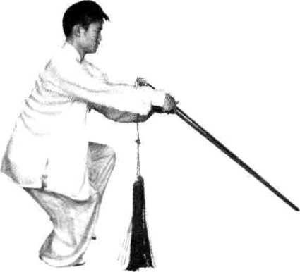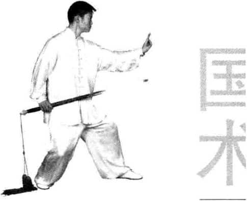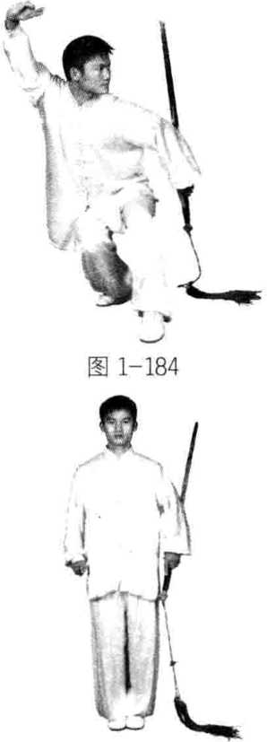 剑尖向前;同时,左剑指前指.成三体式步。目视正前 (图 l-183)o