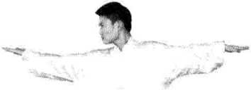 两腿左右开立,略宽于肩,两臂侧平举成一直线,