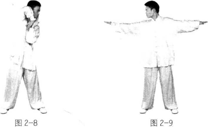 经上、向左、向下于胸前,同时,左手臂经下向右、向 上于胸前与右臂内(图2-8)。