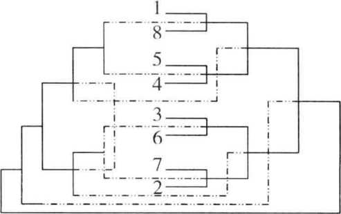 人数不满2n时,采用增设轮空号码给予补足,或用抢号的办法解决。(图7-5) 轮次数的计算:轮次=2。;如8人参加比赛2二8 , n二3。