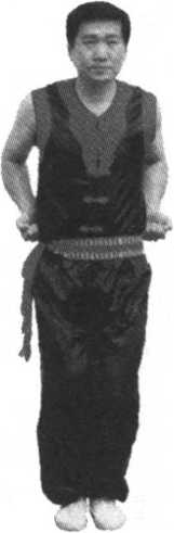 拆门解义:此势常为开拳前的预备式,主要蓄力 于双拳,以鼻调息运至下丹田,并注于双臂及全身。