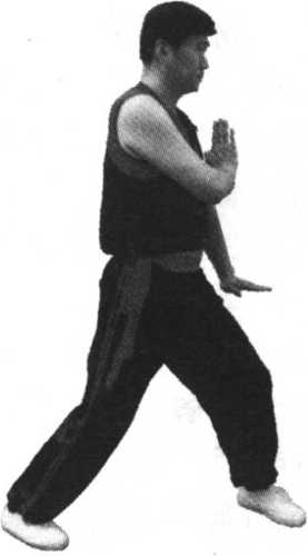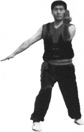 拳谚:推月膀手盖踢脚, 一盖掌力贯桥掌; 临阵灵活要发挥, 切记审势不可忘。